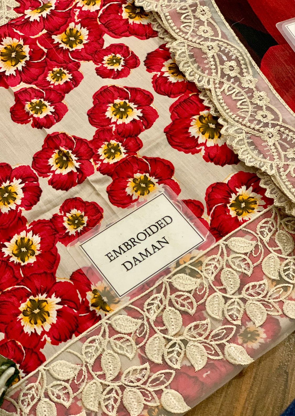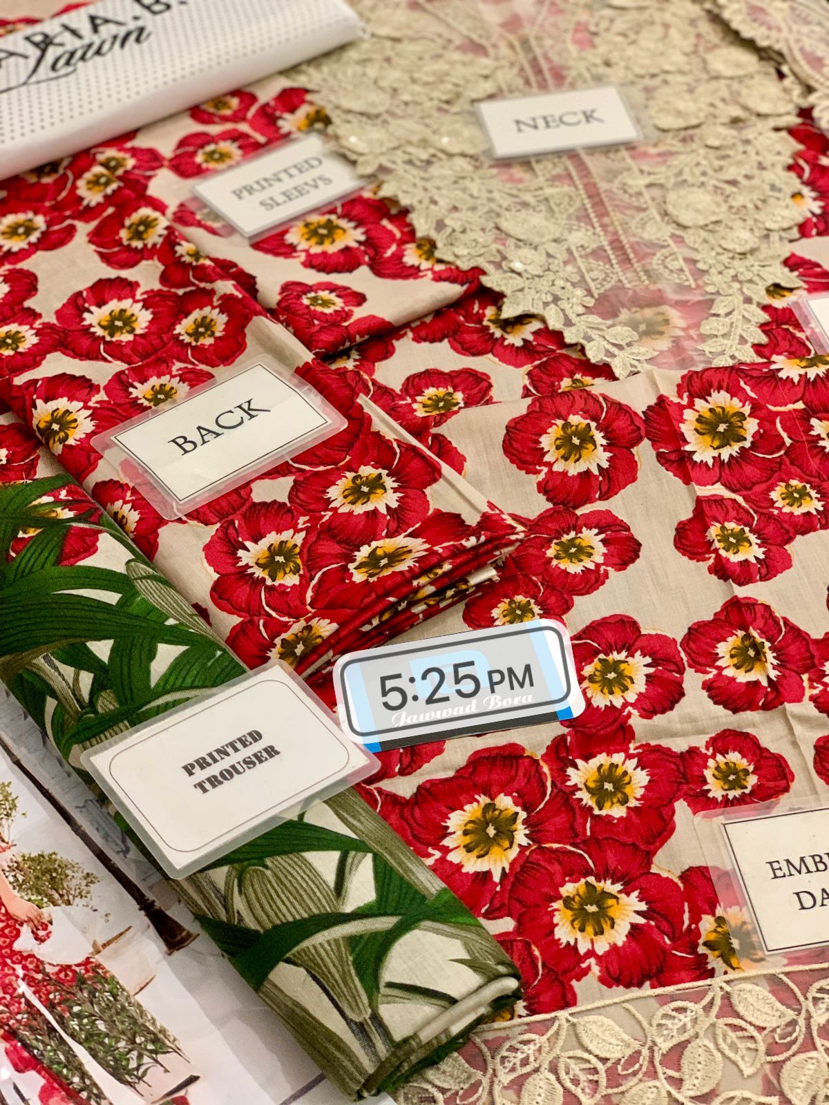 *printed lawn front with fully heavy embroidered spengle work neckline with 3D embroidered spengle work attach with heavy embroidered spengle work daman boarder*